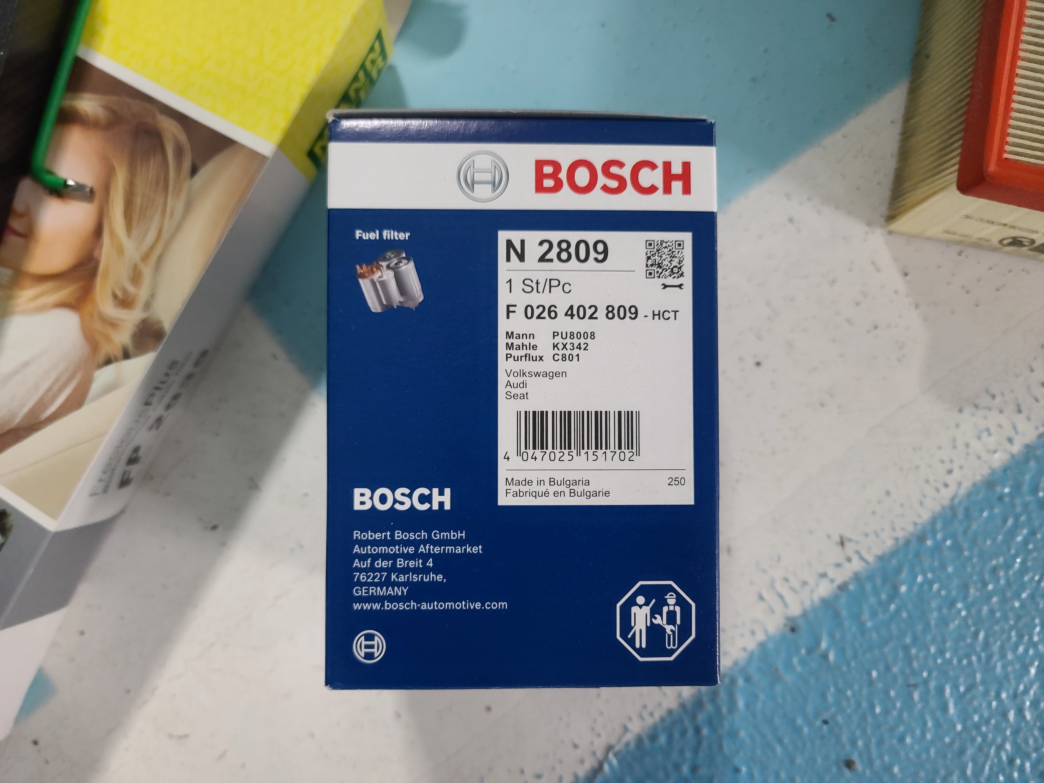 현재 국내에서 구입 가능한 파사트 7세대 2.0 tdi 연료필터 중 가장 저렴한 연료필터는 보쉬의 N2809이다. 폭스바겐 순정 7N0 127 177 B (7N0127177B), 그리고 만필터의 PU8008과 호환되고, 2만 원가량에 구입 가능하다.