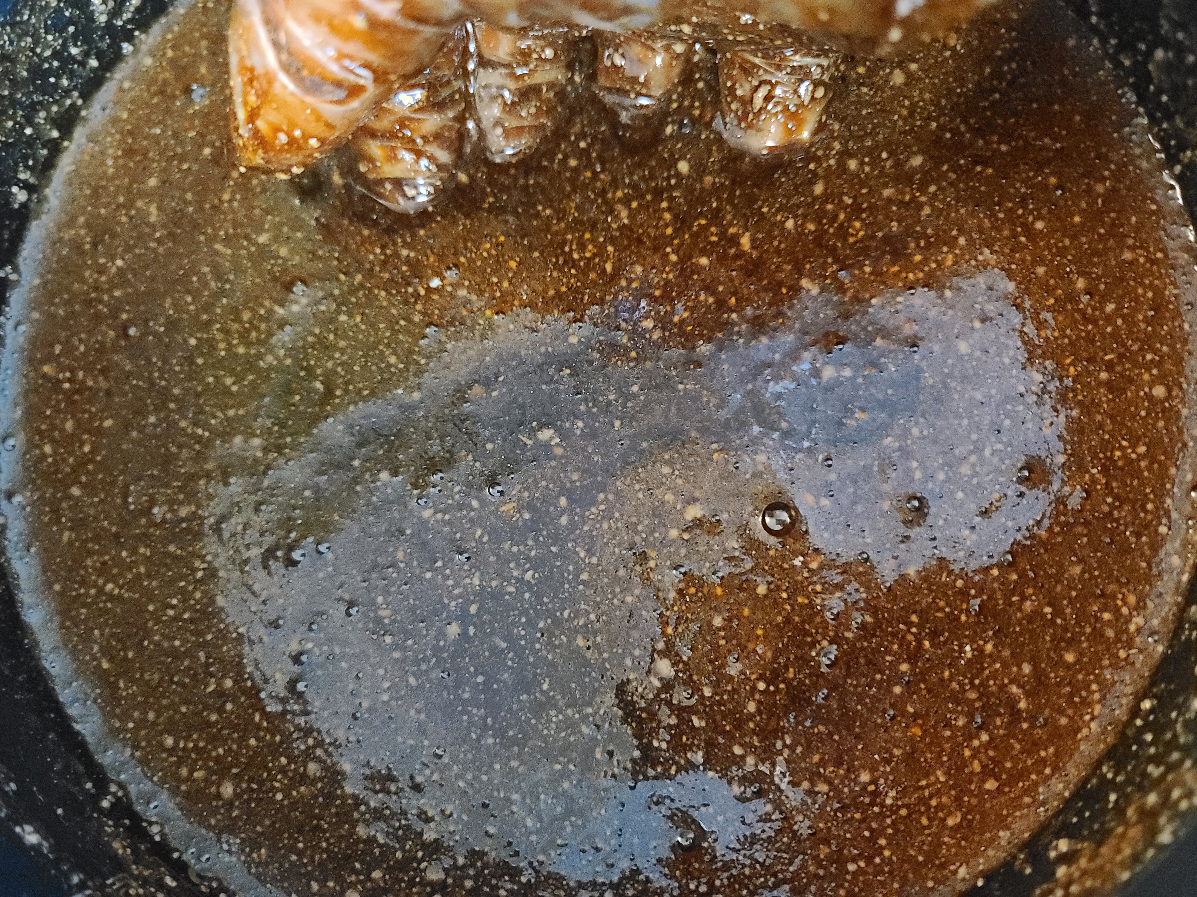 아직도 녹지 않은 가루가 있지만 괜찮다. 잘 휘저어서 담으면 된다. 이때 깜빡하고 잠깐 쇠수저를 썼는데, 쇠수저 쓰면 안 된다고 한다. 복령인가 생지황이랑 상극이라나.