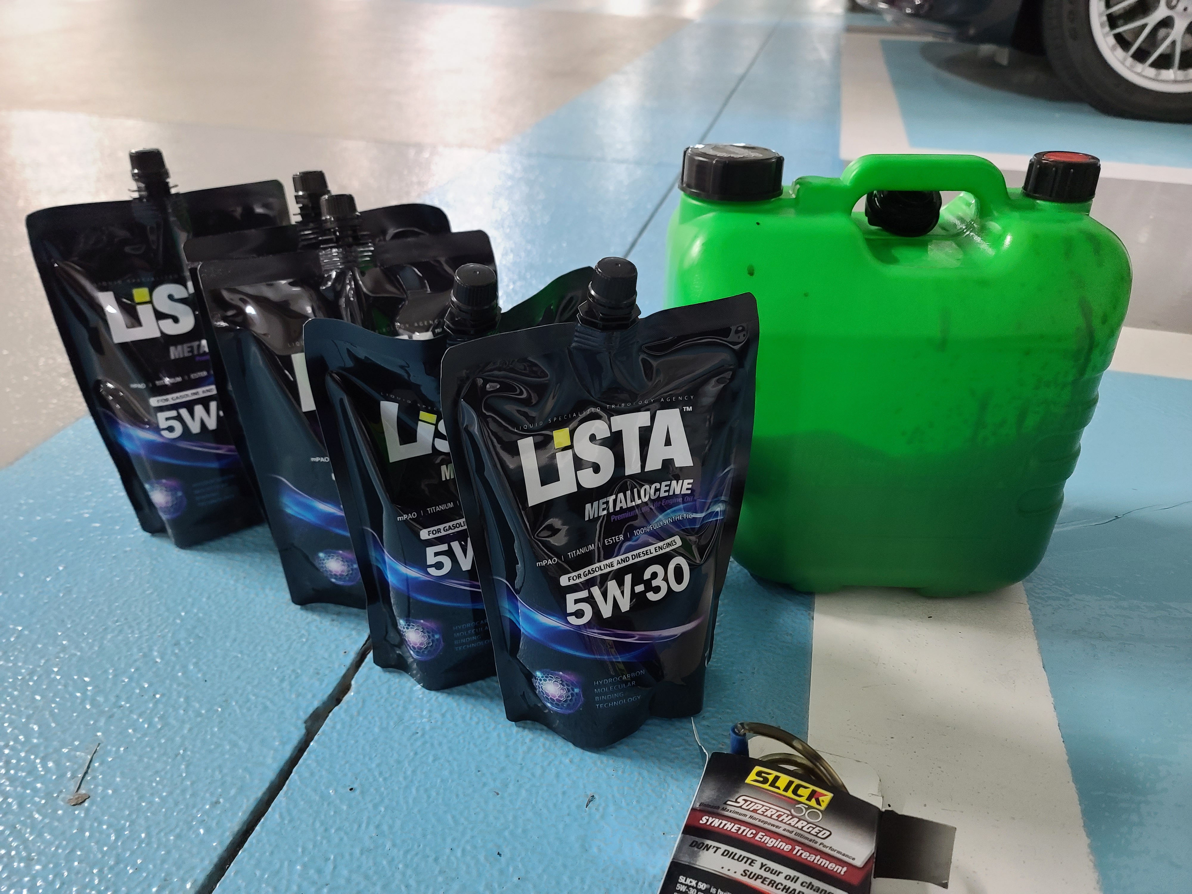 아무래도 오일필터를 바꾸지 않았기 때문에 직전 엔진오일과 같은 오일을 넣어주는 게 좋을 것 같다. 메탈로센 4L와 슬릭 15oz(444ml)를 넣어주니 딱 맞았다.