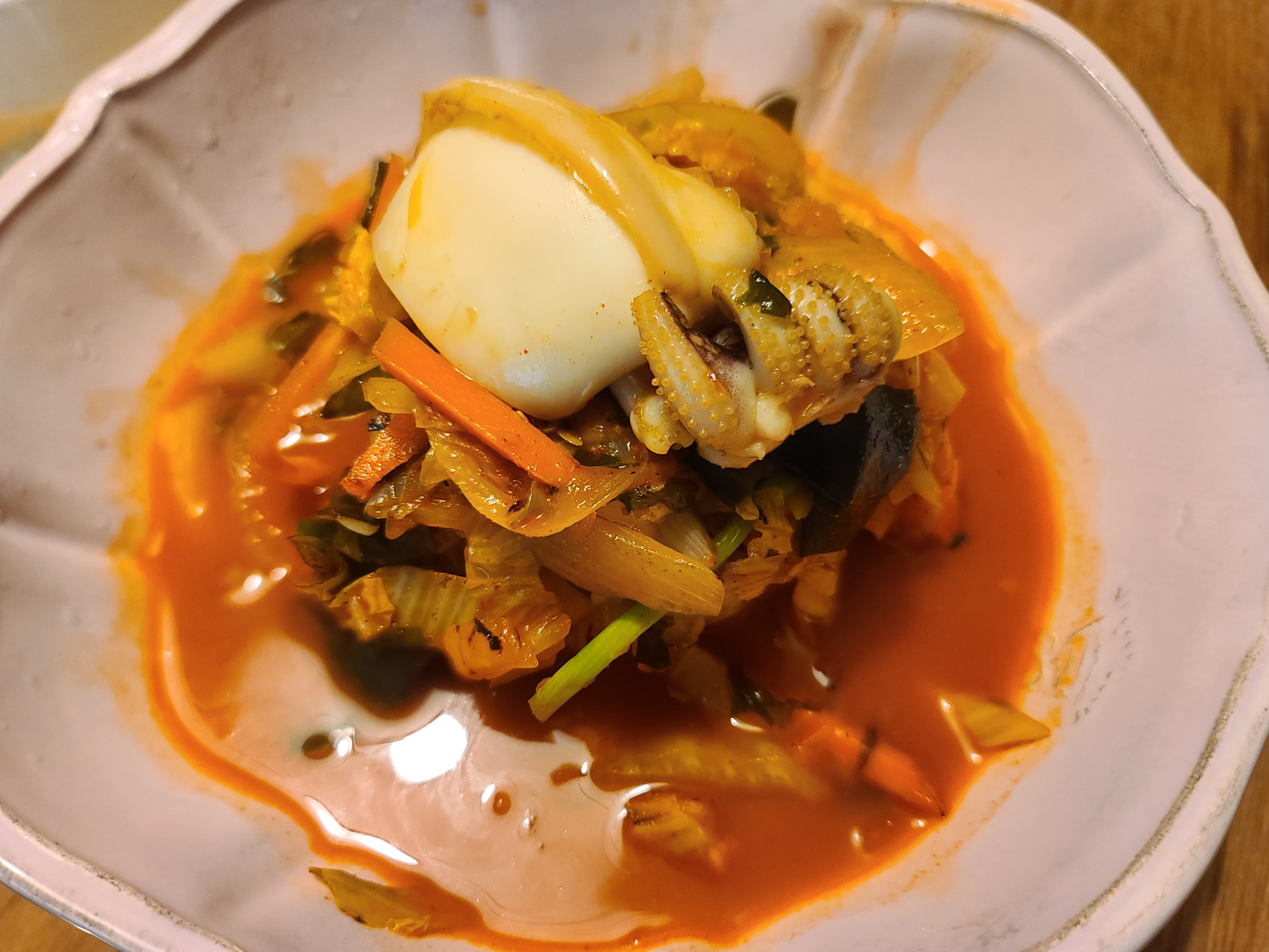 내용물을 다 넣지 않고 찍은 사진인데, 국물과 건더기가 아주 충분하다. 게다가 오징어 향이 굉장히 좋다. 타 중국집에 비해 재료의 질이 매우 훌륭하다.